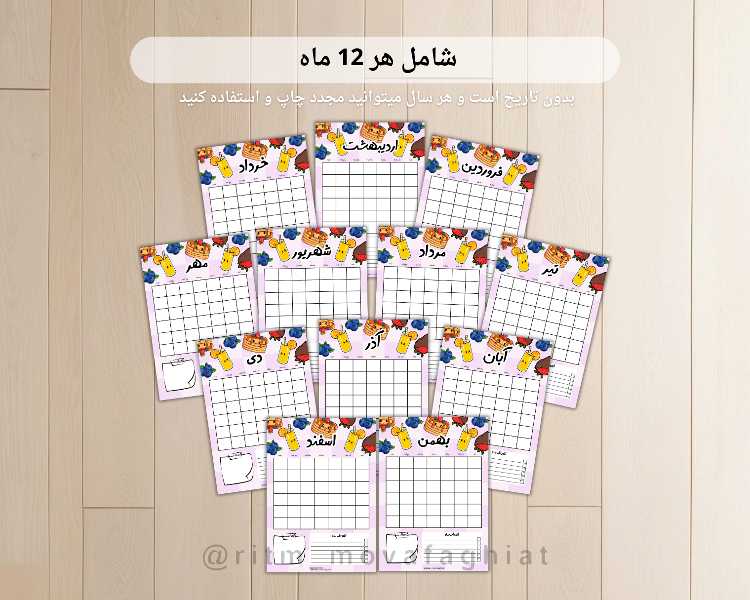 شامل همه ماه ها، تقویم قابل چاپ ، برای برنامه ریزی و هدف گذاری ماهانه،صفحات وظایف ماهانه