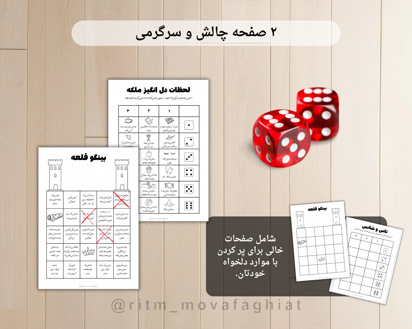 تو فرماندهی قلعهای هستی که اسمش “خونه” است و این ژورنال، دفتر فرماندهی توئه. با این ژورنال:همه کارها و برنامهها زیر نظر فرمانده قلعه (تو!) پیش میره . وظایف روزانه، مثل مأموریتهای سلطنتی، با افتخار انجام میشن .قوانین، مدیریت هزینه ها، دستور پختها و حالوهوای فرمانده، همه در یک کتابچه منظم و زیبا ثبت میشن .از آشپزخانه تا خزانهداری، همه چیز تحت کنترل توئه. — چرا باید داشته باشی؟ چون هر قلعهای به یک فرمانده نیاز داره — و این ژورنال، سلاح و نقشه ی شماست برای اداره زندگی با نظم، لذت و بدون آشفتگی.