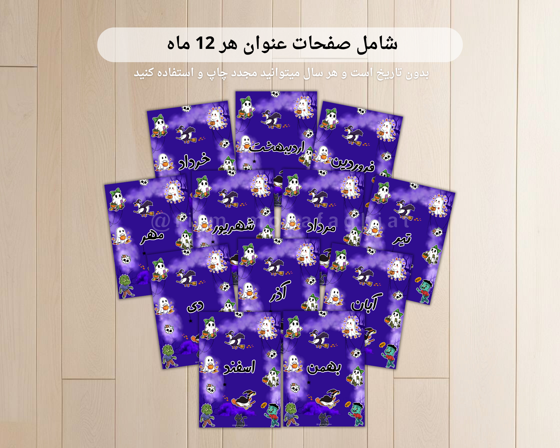 بسته صفحه عنوان ماه ها، از قبل رنگی، صفحات جلد بولت ژورنال ،شامل تمام 12ماه‌